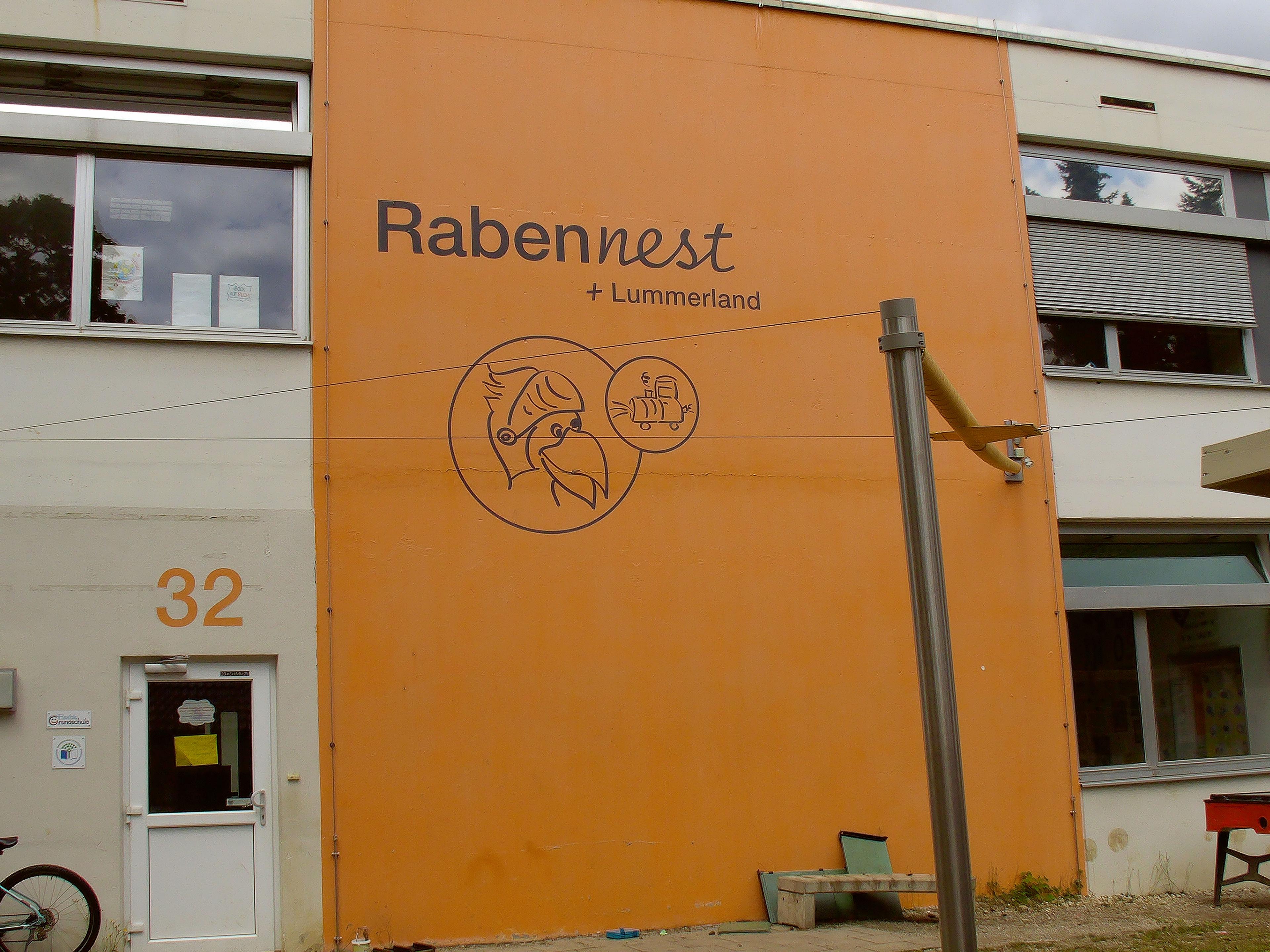 Eine weitere Gruppe ist zusammen mit einigen Schulklassen der benachbarten Grundschule ins sogenannte “Rabennest” ausgelagert. Hier stehen den Kinder neben einem schönen Gruppenraum und einem Hausaufgabenzimmer auch noch eine Freispielfläche mit Klettergerüst, Platz zum Laufen und Toben und ein kleiner Pflanzgarten zur Verfügung.